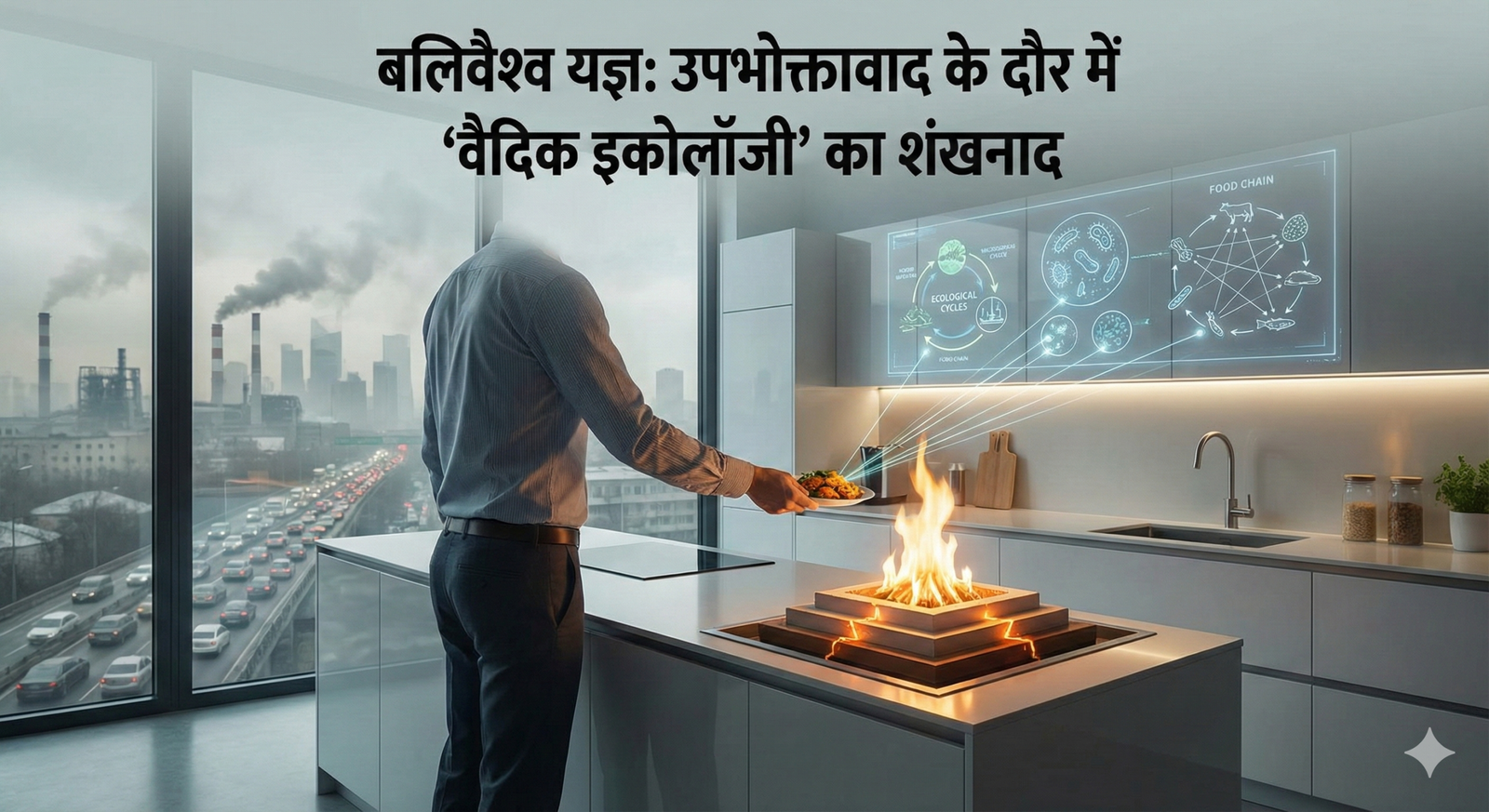 यह विडंबना है कि हम ‘वर्ल्ड एनवायरनमेंट डे’ पर सोशल मीडिया पोस्ट लिखकर अपने कर्तव्यों की इतिश्री समझ लेते हैं, जबकि हमारे पूर्वजों ने पर्यावरण संरक्षण को दैनिक जीवन का अभिन्न अंग बना दिया था। बलिवैश्व यज्ञ, दैनिक जीवन में ‘एप्लाइड इकोलॉजी’ (Applied Ecology) का सबसे व्यावहारिक रूप है।