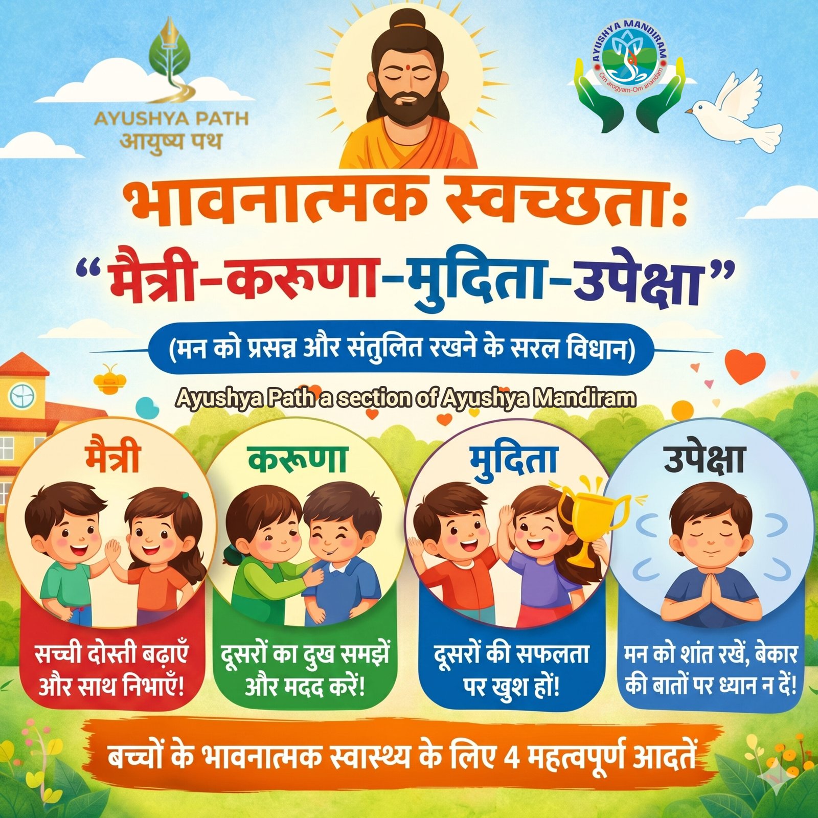 आज Positive Psychology और Mindfulness शोध भी बताते हैं कि ये चार भाव Depression और Anxiety से बचाते हैं: