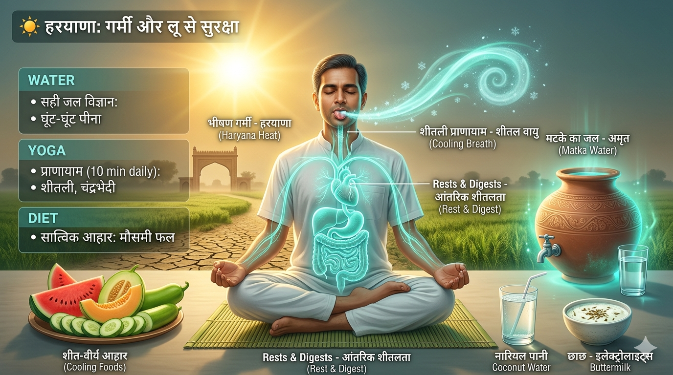 ☀️ हरियाणा में गर्मी का कहर: डिहाइड्रेशन से बचाव के प्राकृतिक और योगिक उपाय
