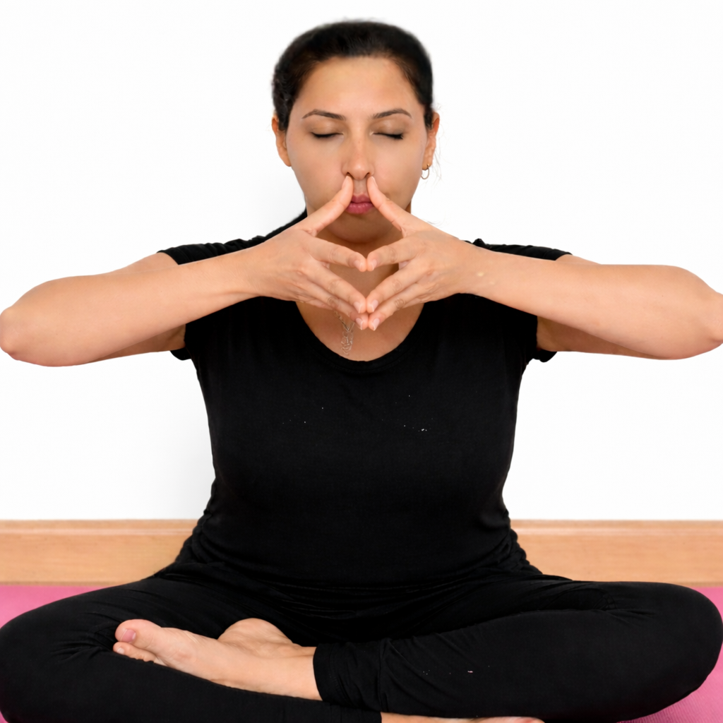 - मुद्रा: अपने दोनों अंगूठों से नासिका छिद्रों को बंद करें।